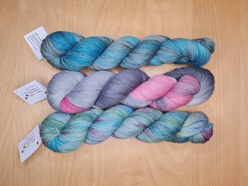Dir gefällt einer der Stränge genau so gut wie mir und Du hättest gerne ein Paar Socken daraus? Kein Problem! Schreibe mir eine Nachricht und ich werde sehen, was ich tun kann ;-)